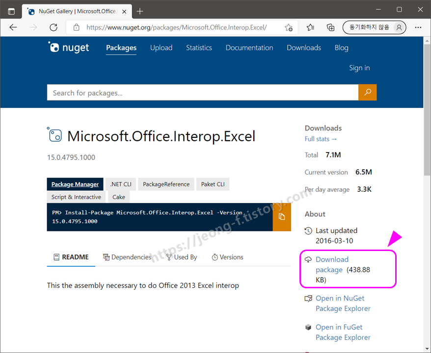 확인용으로 Excel을 사용할 수 있는 패키지인 Microsoft.Office.Interop.Excel를 다운로드하여 보겠습니다.